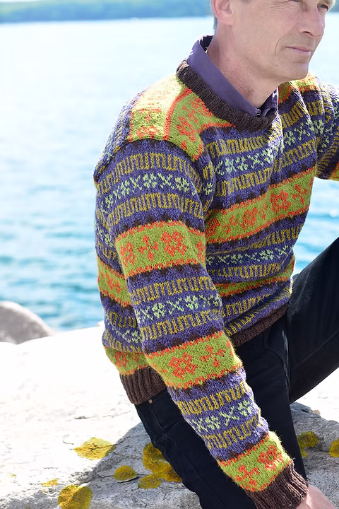 Christel Seyfarth: Alle modellen van Christel Seyfarth worden op een rondbreinaald, rond gebreid, daarna geknipt en biezen of randen aangebreid. Na elk telpatroon is er een duidelijke beschrijving van hoe het model wordt geknipt, genaaid en afgewerkt. Wanneer u breit met 2 kleuren, “weeft” u de kleur die u niet gebruikt bij elke 2, 3 of 4e steek om elkaar. Op deze manier worden lange draden aan de achterkant van het model voorkomen. Deze techniek wordt Fair Isle/ jaquard breien genoemd. Deze trui is gebreid in lamswol op maat 3.0 en 3,5 mm De naalden zijn verkrijgbaar in de webshop voor alle naalden in maat 3,5mm klikt u hier Verfijn daarna uw zoekopdracht om de juiste naald te vinden. Weet u niet goed welke naald u het beste kunt gebruiken dan verwijzen wij `u graag naar onze naaldenwizard.