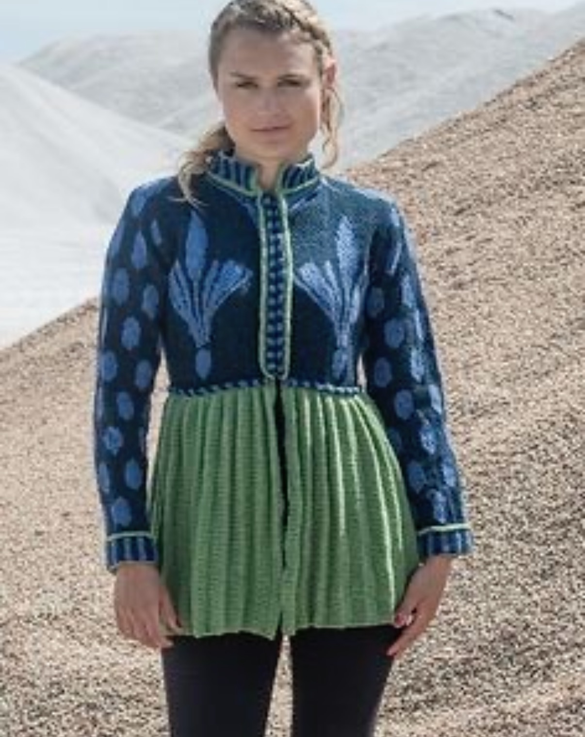 Christel Seyfarth: Alle modellen van Christel Seyfarth worden op een rondbreinaald, rond gebreid, daarna geknipt en biezen of randen aangebreid. Na elk telpatroon is er een duidelijke beschrijving van hoe het model wordt geknipt, genaaid en afgewerkt. Wanneer u breit met 2 kleuren, “weeft” u de kleur die u niet gebruikt bij elke 2, 3 of 4e steek om elkaar. Op deze manier worden lange draden aan de achterkant van het model voorkomen. Deze techniek wordt Fair Isle/ jaquard breien genoemd. Deze jas is gebreid in lamswol op maat 3.0 en 3,5 mm De naalden zijn verkrijgbaar in de webshop voor alle naalden in maat 3,5mm klikt u hier Verfijn daarna uw zoekopdracht om de juiste naald te vinden. Weet u niet goed welke naald u het beste kunt gebruiken dan verwijzen wij `u graag naar onze naaldenwizard.