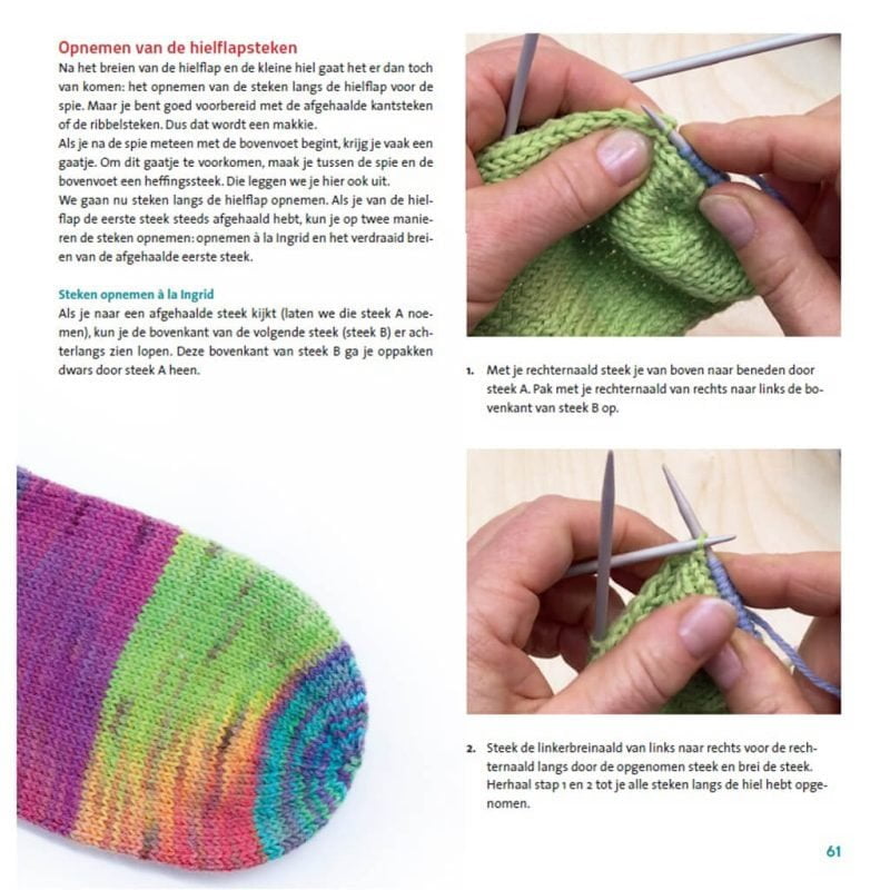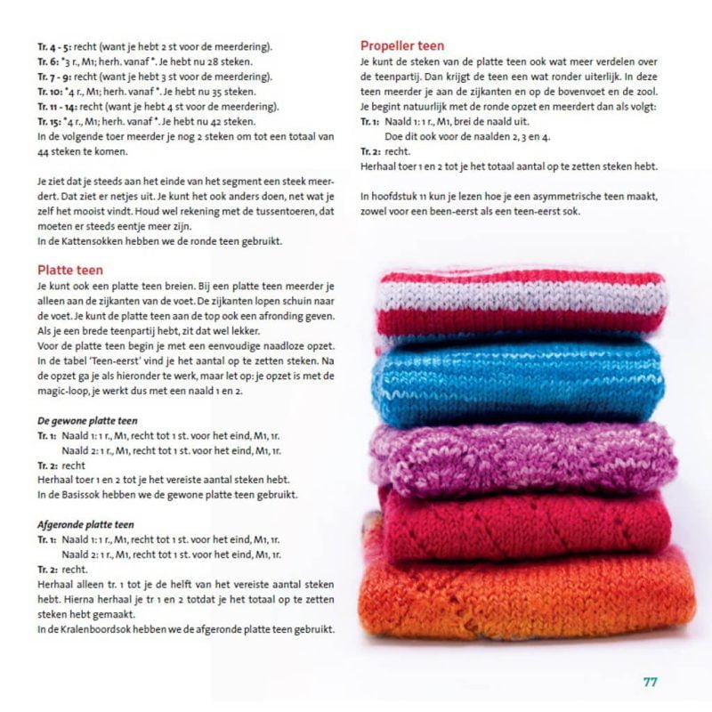 Hoe brei je nou eigenlijk een sok en wat is een teen-eerst sok? Je vindt twee heel uitgebreide basissokken in het boek: één been-eerst sok en een teen-eerst sok.