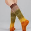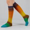 Hoewel de streng doet vermoedden dat het hier om een kort verloop garen gaat is dit juist een lang verloop… de kleur verloopt langzaam over het gehele been.