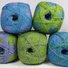 een 100 % wollen draad met een langzaam verloop. Dit wil zeggen dat het enige tijd duurt voordat de volgende kleur komt. Dit is uitgaande van pand breedte breien. Wanneer u smalle stroken breidt dan zal de strook zo goed als in 1 kleur naar voren komen. Hoe breder hoe smaller de strepen worden. Een geweldig mooi effect garen voor projecten waar een langzaam verloop van de kleuren gewenst is. De kleuren zijn heel erg sprankelend en geven een super leuk effect als hiermee ingebreid wordt. En nog spannender wanneer er met 2 verkleurende kleuren wordt ingebreid.