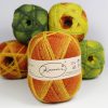 een 100 % wollen draad met een langzaam verloop. Dit wil zeggen dat het enige tijd duurt voordat de volgende kleur komt. Dit is uitgaande van pand breedte breien. Wanneer u smalle stroken breidt dan zal de strook zo goed als in 1 kleur naar voren komen. Hoe breder hoe smaller de strepen worden. Een geweldig mooi effect garen voor projecten waar een langzaam verloop van de kleuren gewenst is. De kleuren zijn heel erg sprankelend en geven een super leuk effect als hiermee ingebreid wordt. En nog spannender wanneer er met 2 verkleurende kleuren wordt ingebreid.