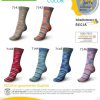 Deze 2 sokken kunt u gelijk maken. Vandaar de naam pair-fect.   Door na het gele draadje te beginnen, de sok van boven naar beneden en van binnen uit de bol te breien creëert u 2 gelijke sokken.